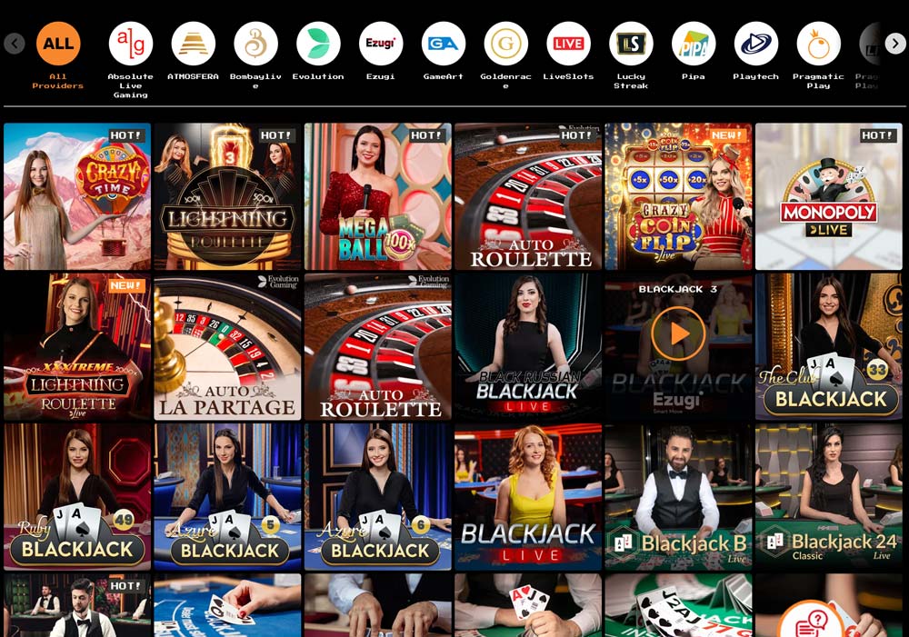 คาสิโนแห่งนี้ได้ร่วมมือกับเหล่าผู้นำในอุตสาหกรรมเกม รวมถึง BGaming, red tiger, 1×2 Gaming, Booming Games, Dog Studio, ELK, NetEnt, Yggdrasil, Wazdan, Evolution Gaming, Betsoft เป็นต้น